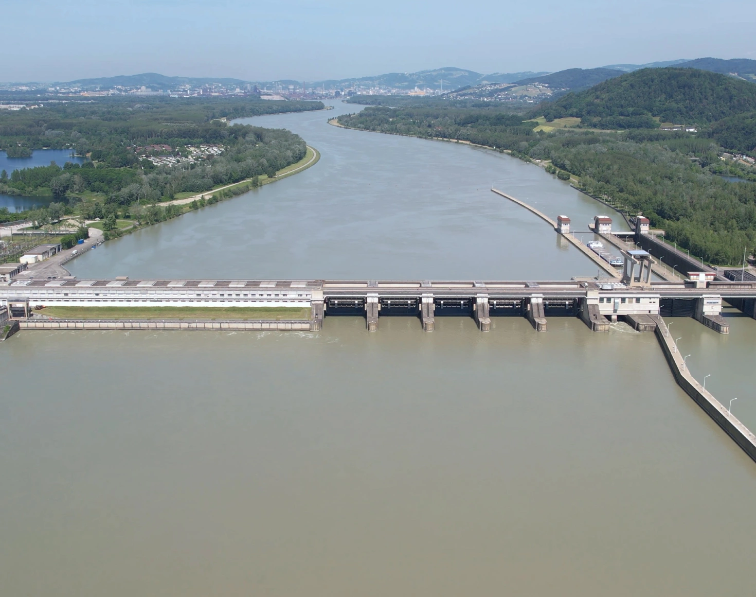 Beim Abdämmen des Wehrfeldes Nr.5 des Donaukraftwerks Abwinden-Asten kommt das kräftigste Wasserfahrzeug von VERBUND zum Einsatz: der Schwimmkran "DOKW2" braucht alle Kräfte, um die Dammbalken vor dem Wehrfeld aufzustapeln. Erst danach können die eigentlichen Inspektionsarbeiten beginnen.